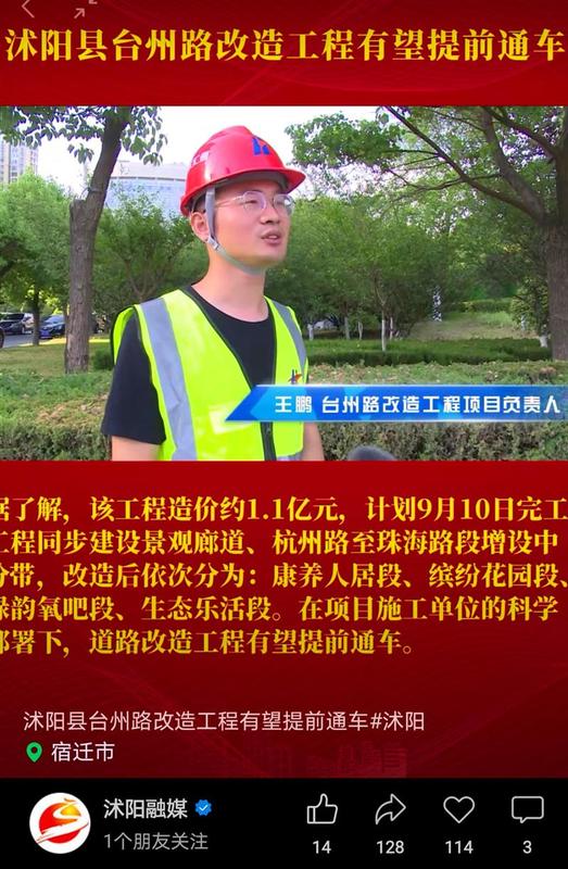 6月8日,沭陽(yáng)縣電視臺(tái)及沭陽(yáng)融媒公眾號(hào)分別以《沭陽(yáng)縣臺(tái)州路改造工程有望提前通車》為題,對(duì)匯通公司承建的沭陽(yáng)縣臺(tái)州路改造工程科學(xué)組織、精準(zhǔn)實(shí)施,加快推進(jìn)項(xiàng)目建設(shè)進(jìn)行專訪報(bào)道。沭陽(yáng)縣臺(tái)州路改造工程(杭州路至珠海路)項(xiàng)目位于宿遷市沭陽(yáng)縣,全長(zhǎng)3442米。自5月10日接到沭陽(yáng)縣住建局指示進(jìn)場(chǎng)以來(lái),在各方領(lǐng)導(dǎo)的幫助和支持下,項(xiàng)目部通過(guò)精心策劃,高效實(shí)施,在保證施工安全和質(zhì)量的前提下,將原有合同工期120天壓縮至72天,獲得了業(yè)主的一致好評(píng),得到了市民肯定。工程效果圖筑夢(mèng)路上,我們以精細(xì)化、快速化、人性化施工管理理念,奮勇當(dāng)先,深耕細(xì)作,助力工程建設(shè)再創(chuàng)佳績(jī),向沭陽(yáng)縣人民交上一份滿意的答卷!