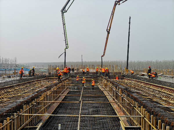 余寒漸消,大地春回,匯通公司沭陽快速路二期(威海路段)工程全面吹響項目建設大干號角。 沭陽縣城區快速路二期工程施工圖設計威海路(臺州路-義烏路),全長4.162千米,造價4.65億元,起點順接現狀威海路(臺州北路交叉口西側),向東沿沂南河大堤至義烏路后折向南,終點位于蕭山路交叉口??焖僦骶€采用雙向六車道;兩側地面輔道采用雙向4車道,主線上跨橋上部結構采用預應力連續梁,全長1406.9米,橋面寬25.5米,單箱三室斜腹板箱梁,下部結構采用“H”型框架墩,群樁基礎。本項目的建設是沭陽中心城區的主干路“十橫十縱”結構的重要一環,有利于完善快速交通功能、促進綜合交通體系發展、推動地區經濟發展、提升
