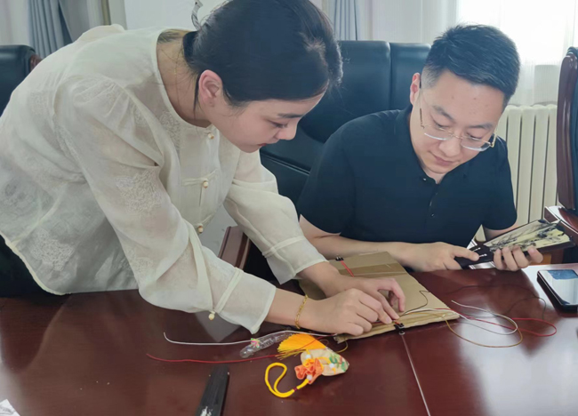 五色絲線系臂、佩香囊是端午節(jié)傳統(tǒng)習俗之一。在專業(yè)老師的指導下,細細的彩線在職工們的手指間飛舞,變成了手腕上一條條漂亮的五彩繩。